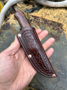 - Brown Tooled Pouch Sheath with Copper Rivets
