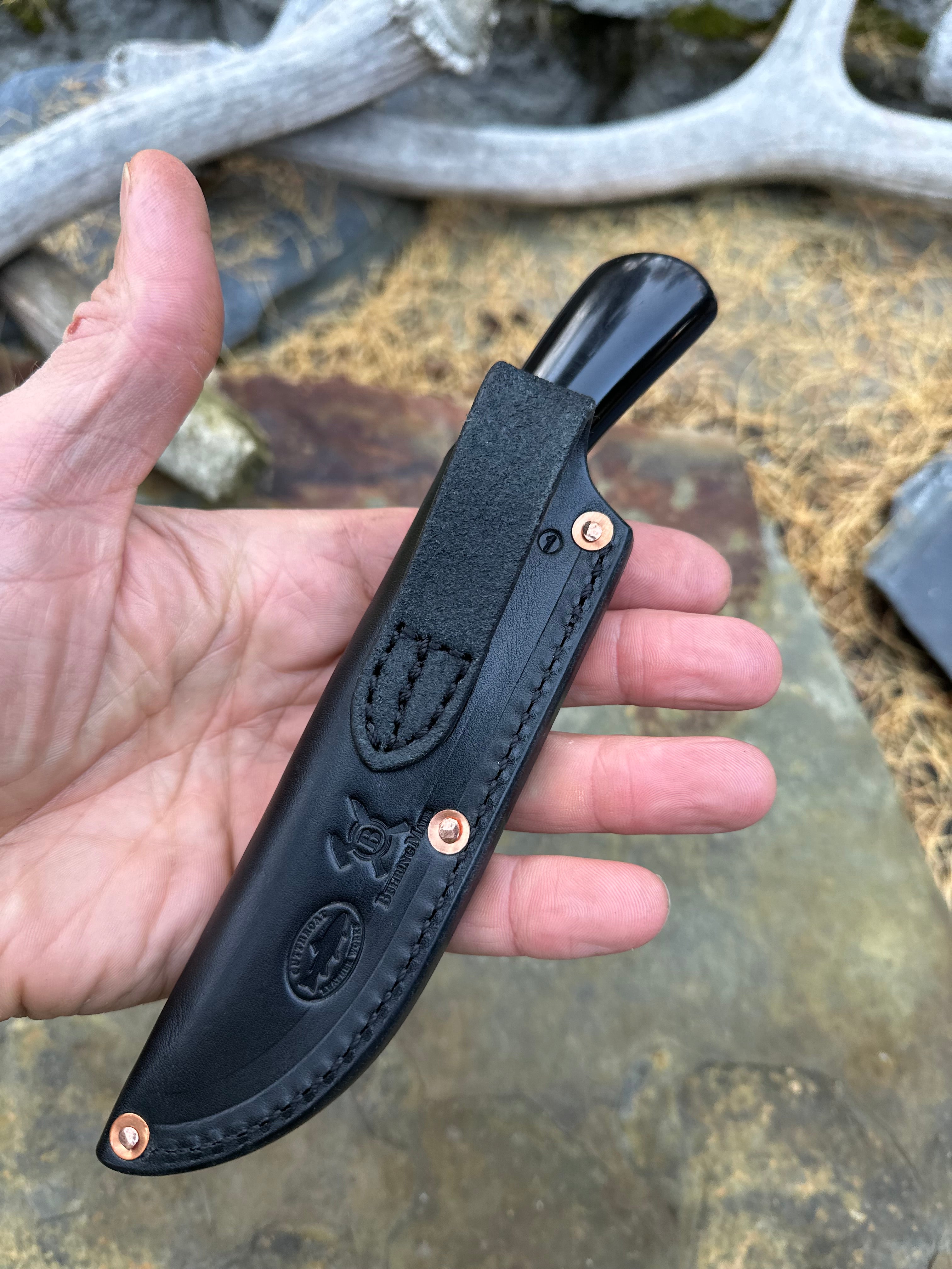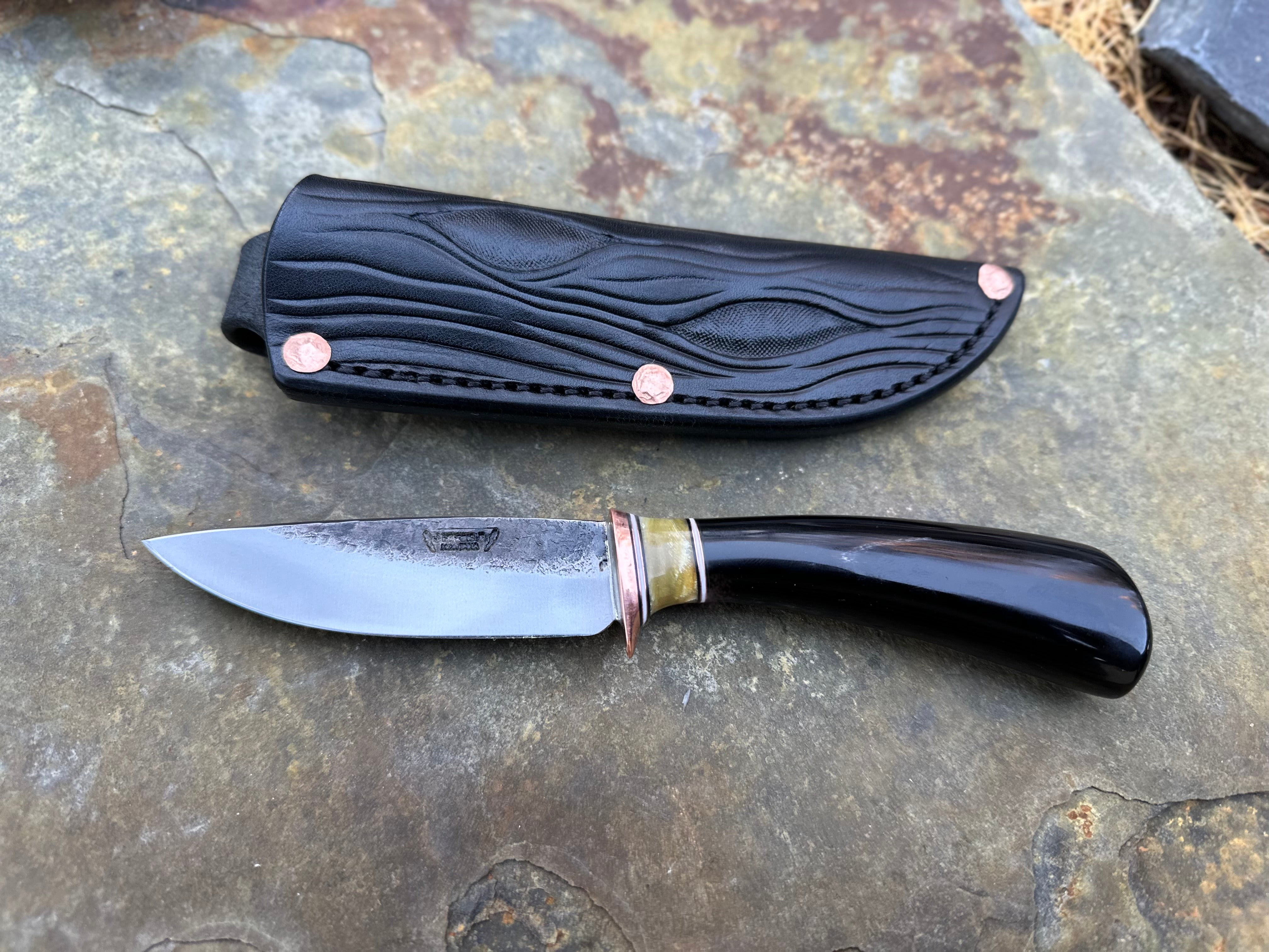 Ox Boss & Buffalo Horn Drop Point w/ Tree Bark Themed Sheath