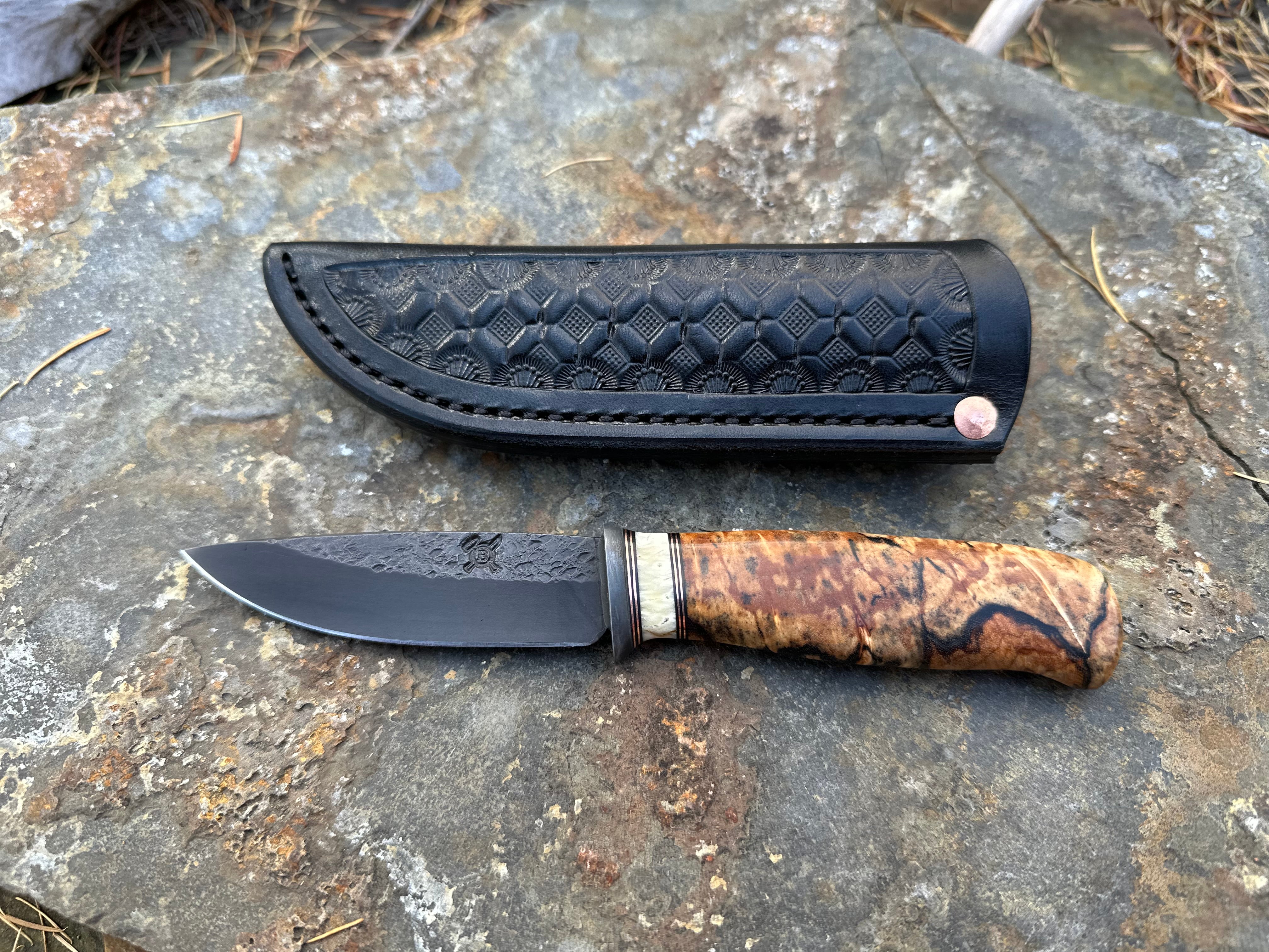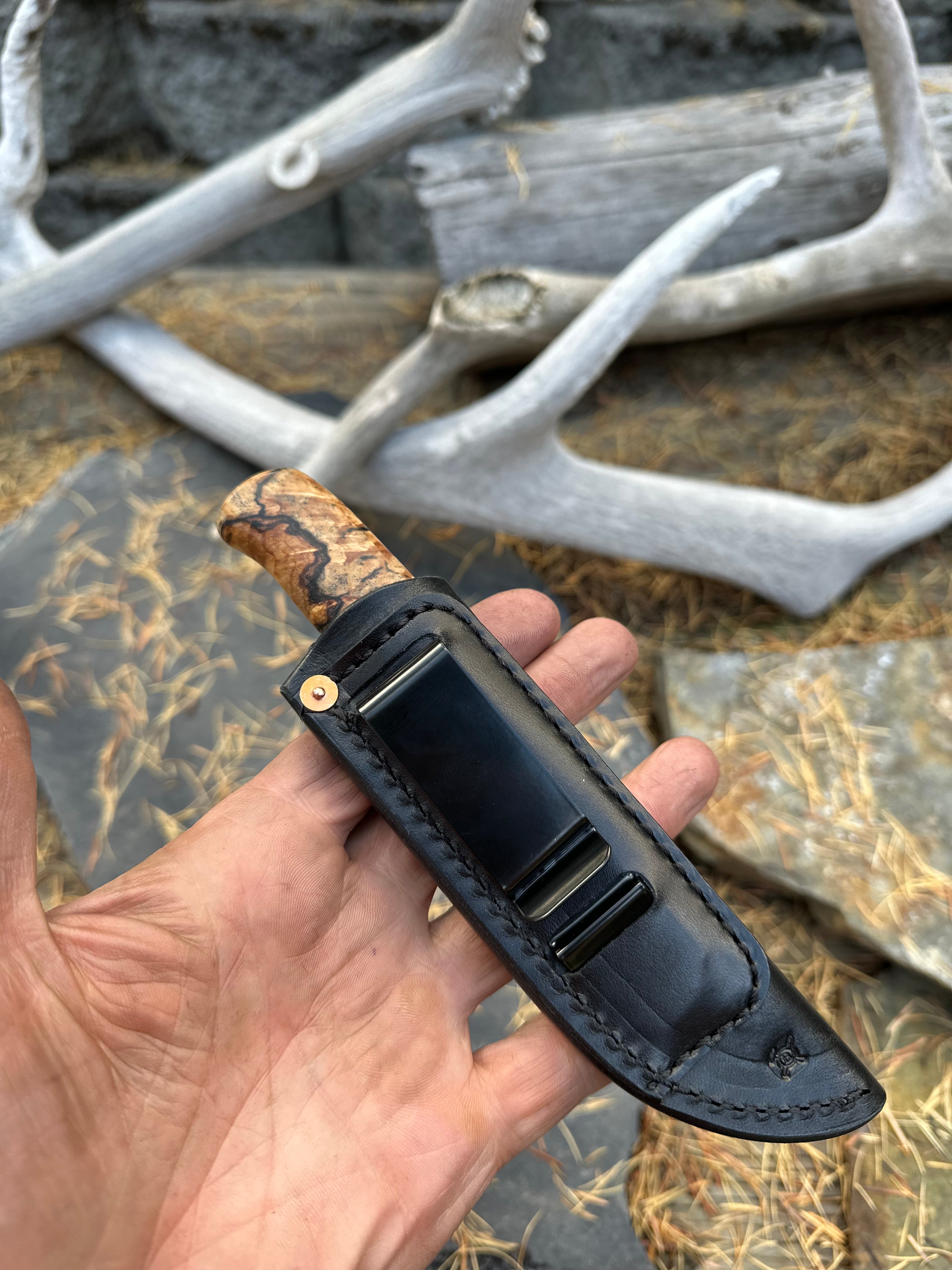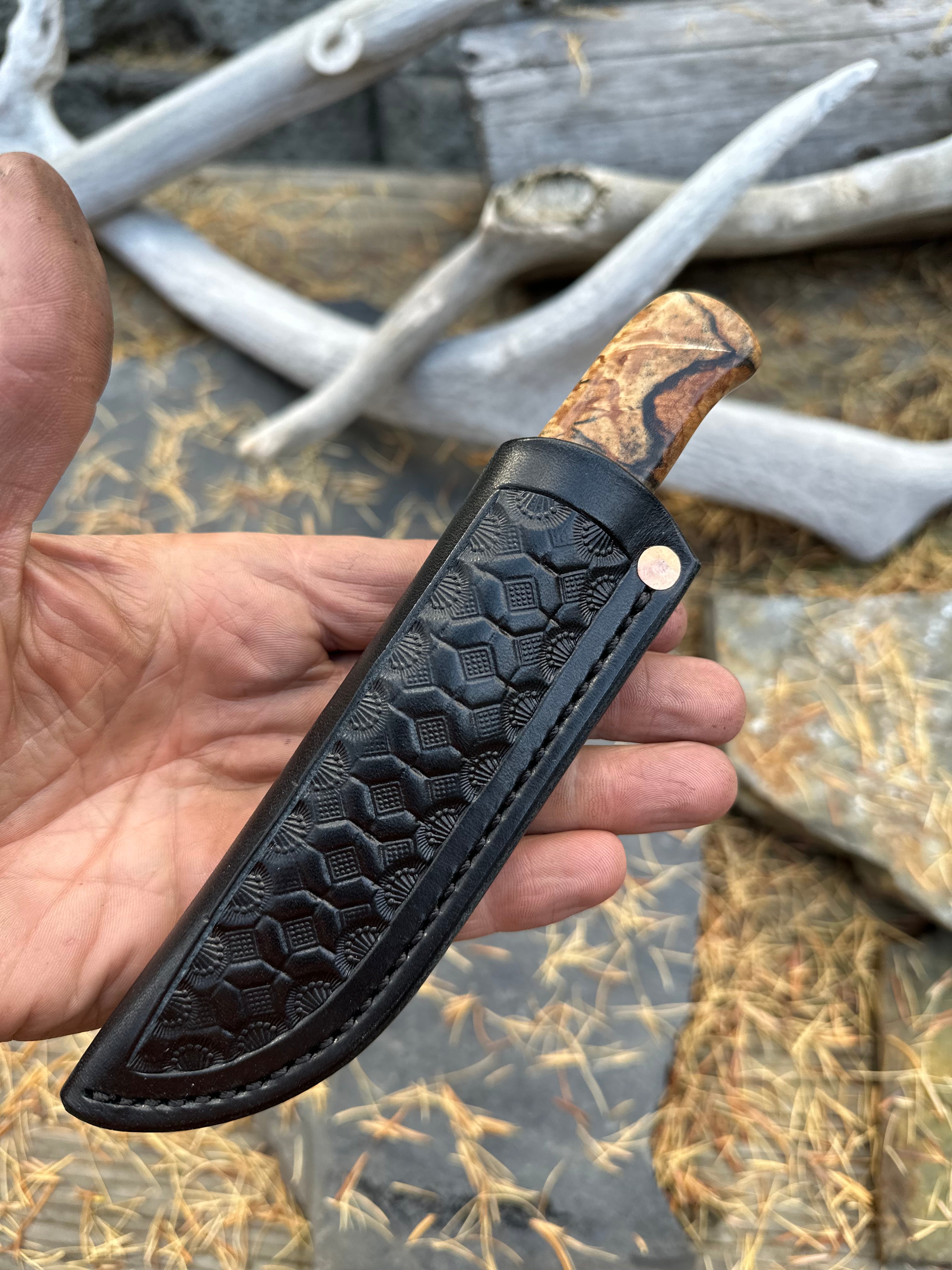 - Black Tooled Pouch Sheath w/ Copper Rivet