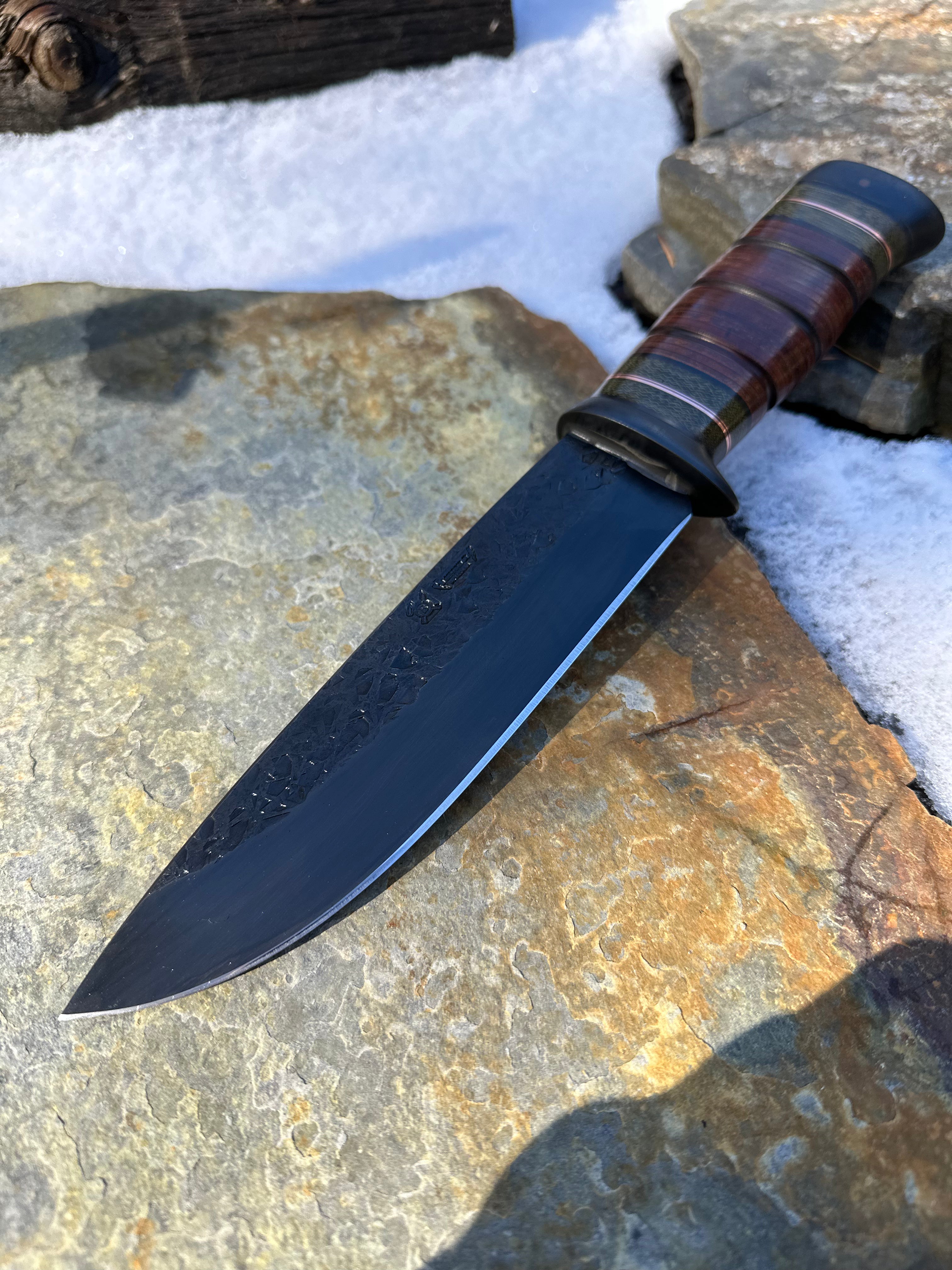 - Black Fiber, Green Micarta, Copper, & Horsehide Handle