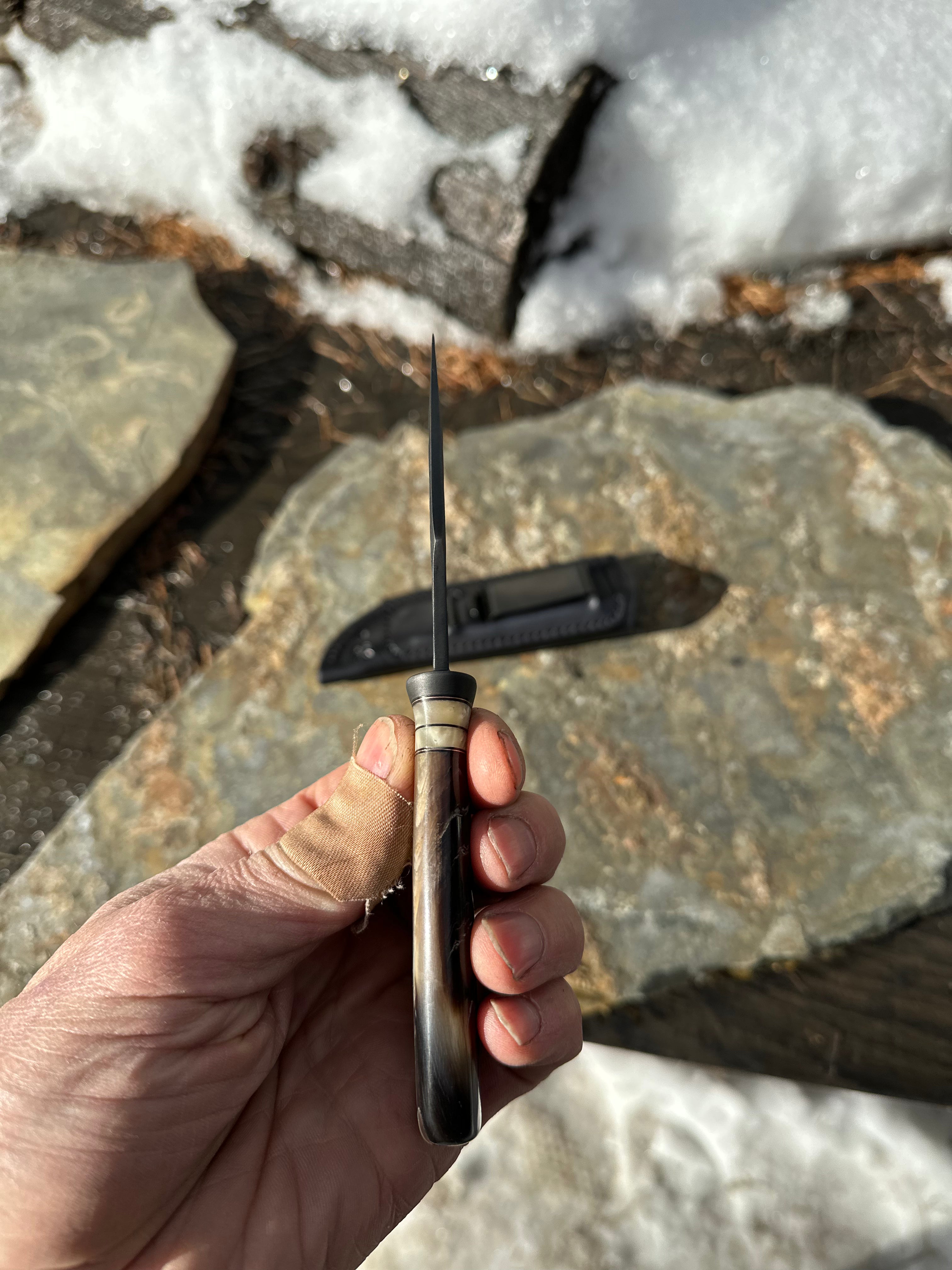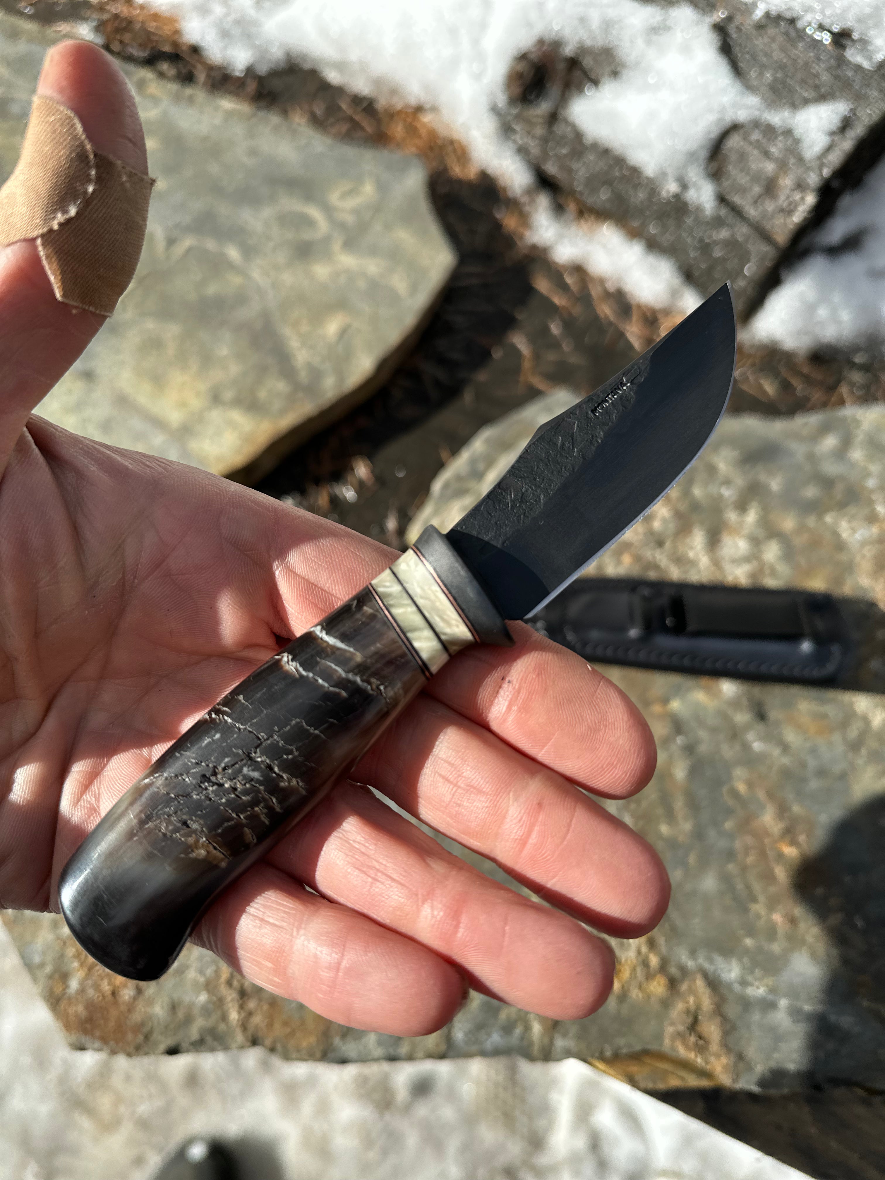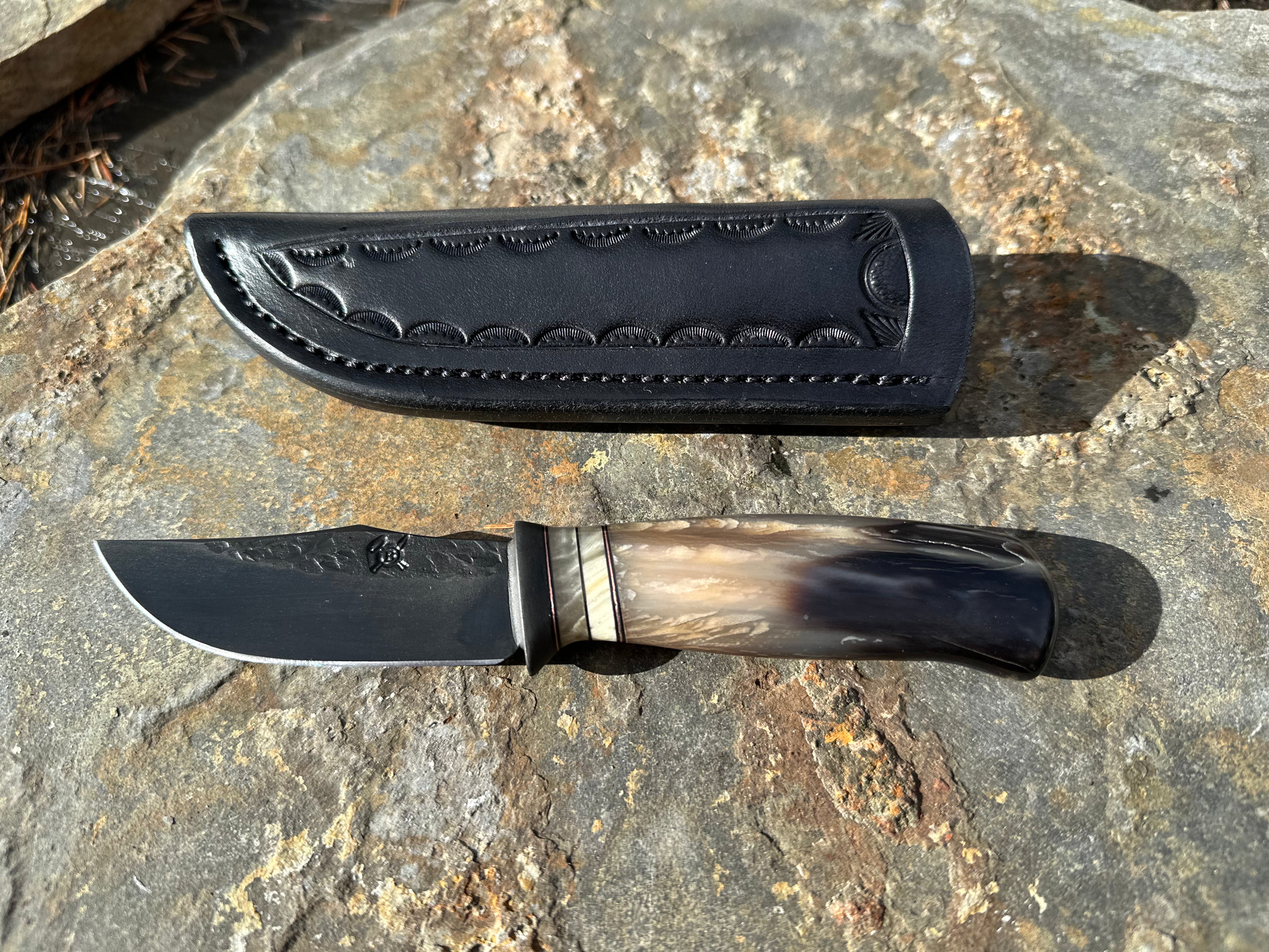 Blued Bison Horn Clip Point Pocket