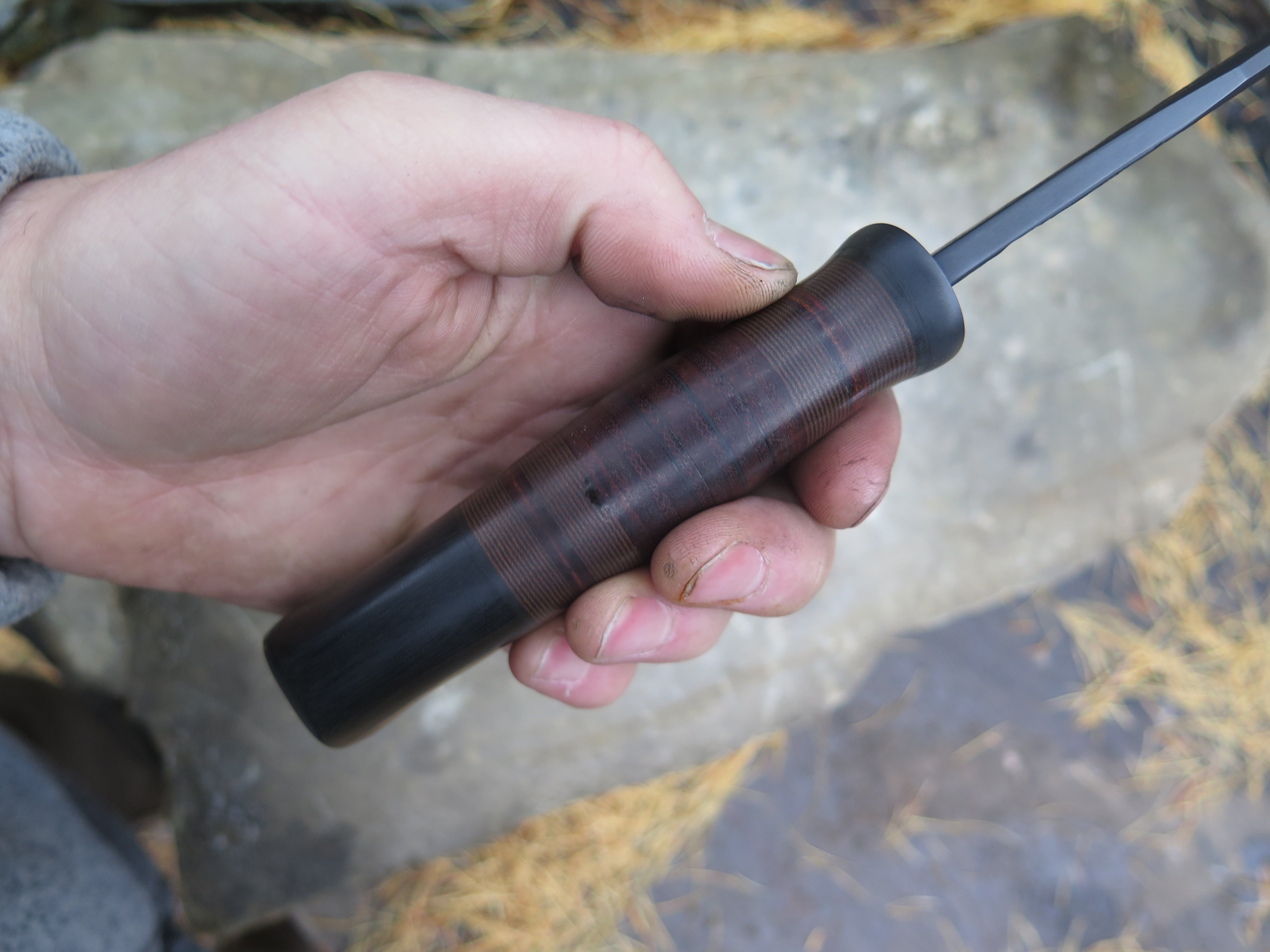 Black Micarta & Horsehide Blued Tanto