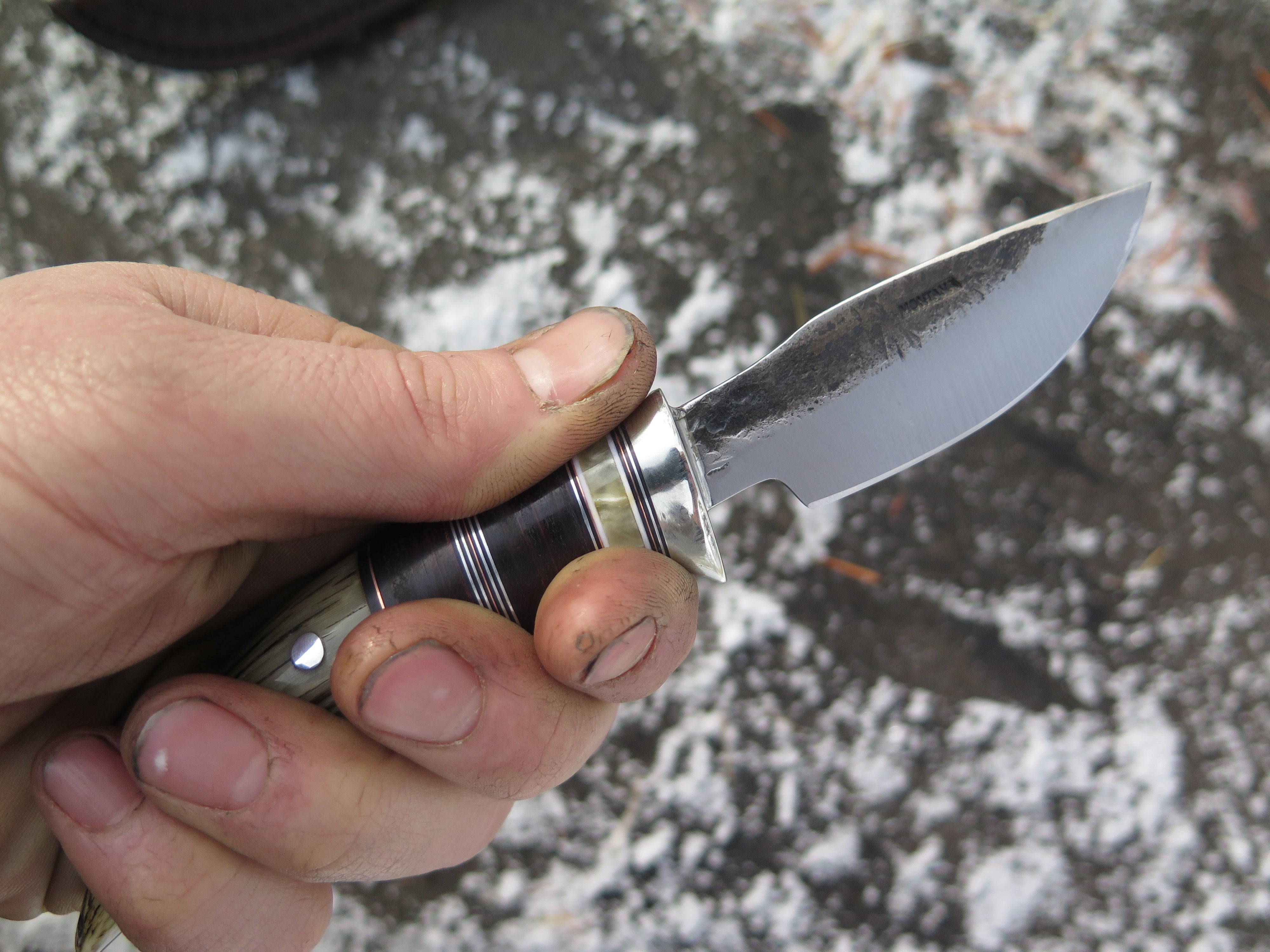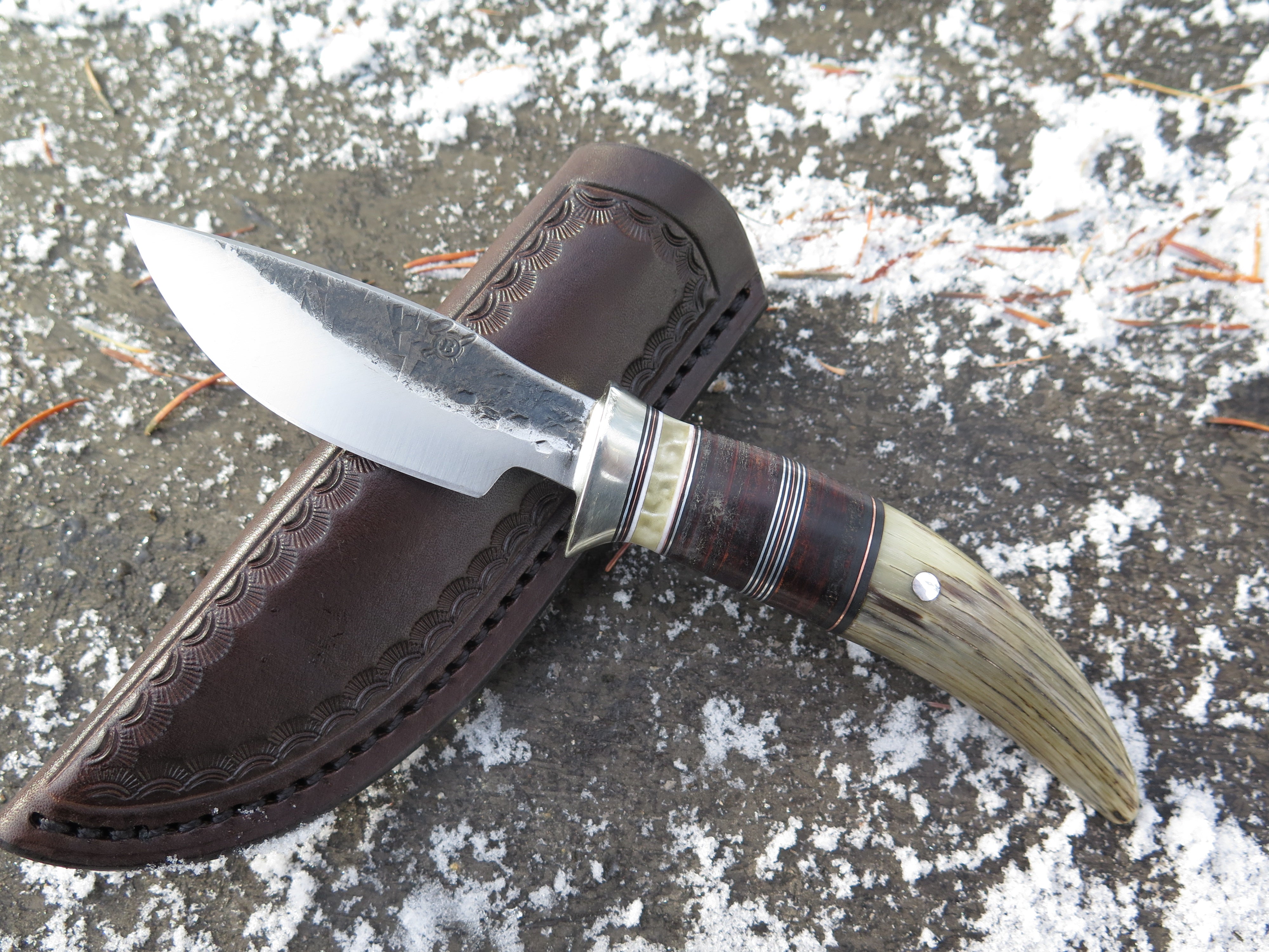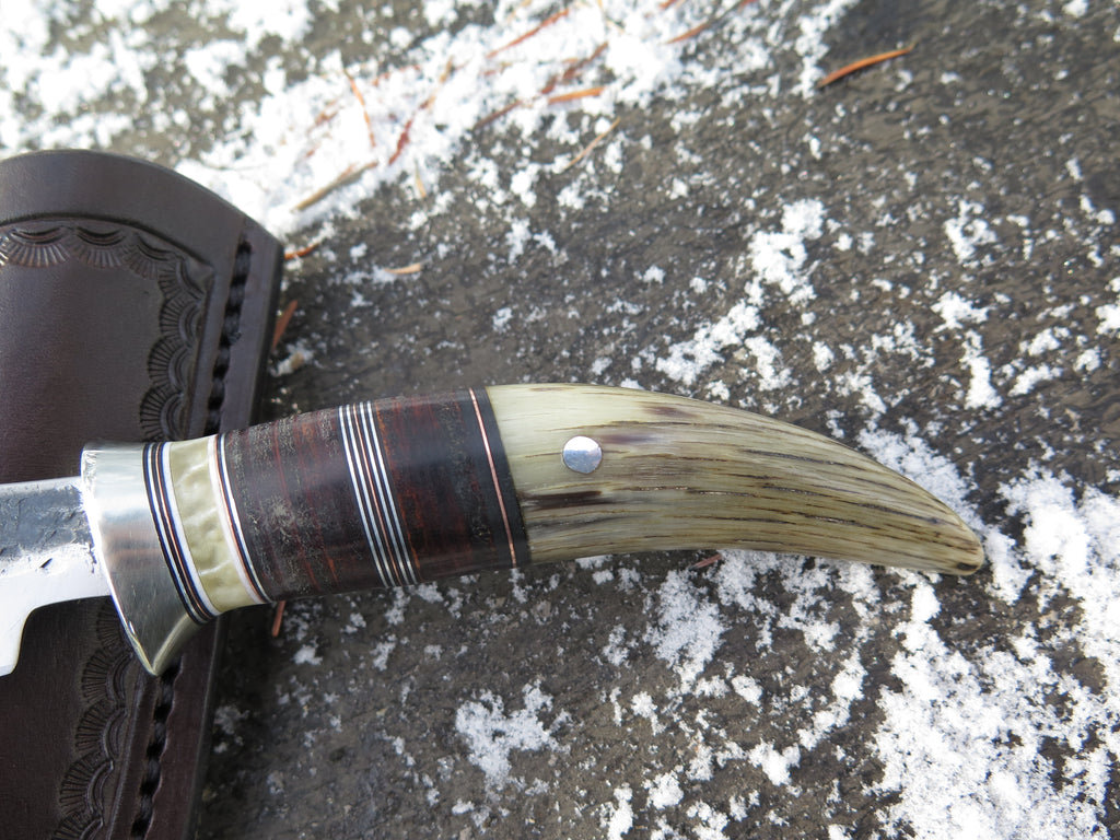 - Black, White, Copper, Aluminum, Horsehide, and Musk Ox Boss handle with a Musk Ox Horn Tip.
