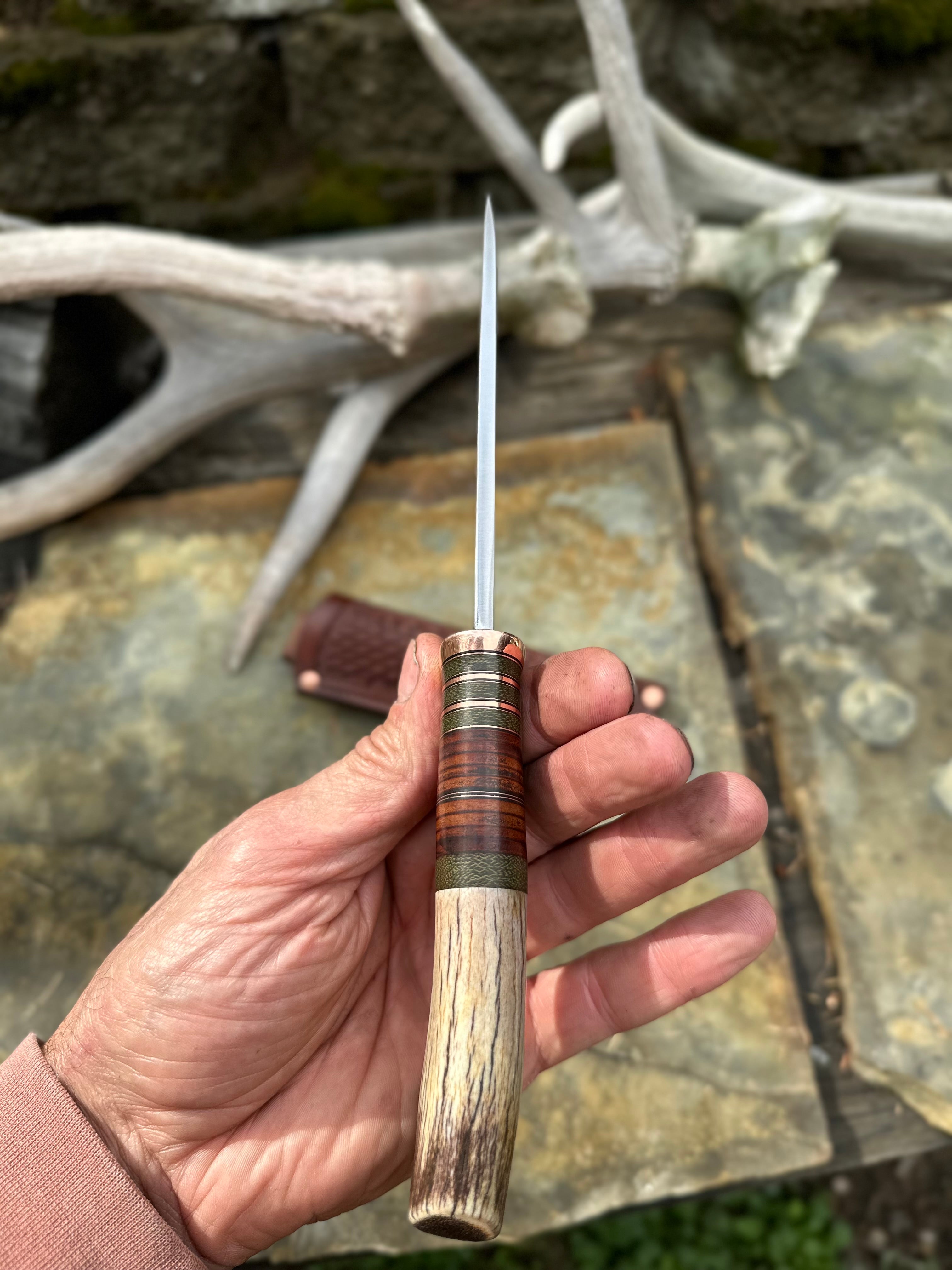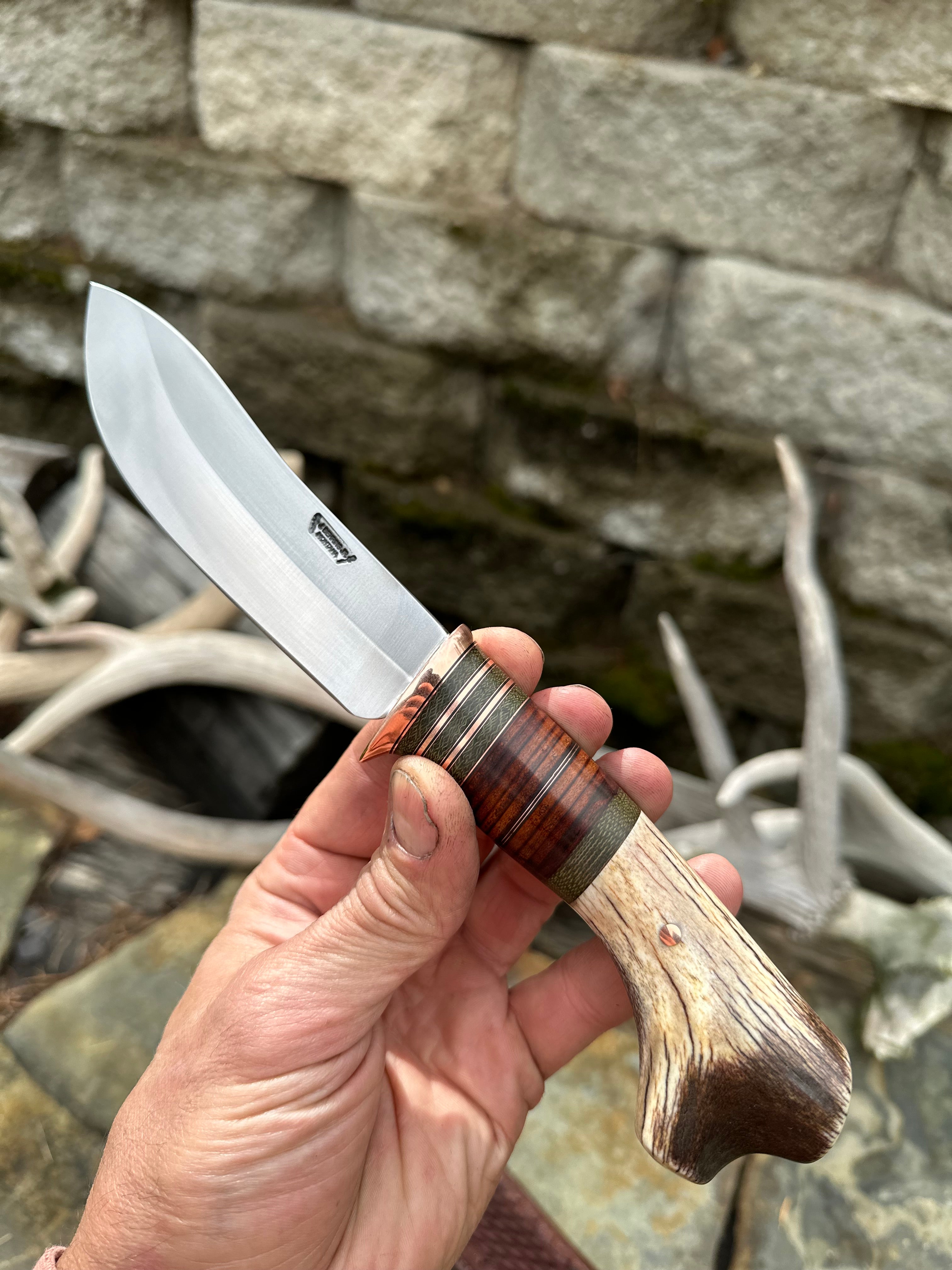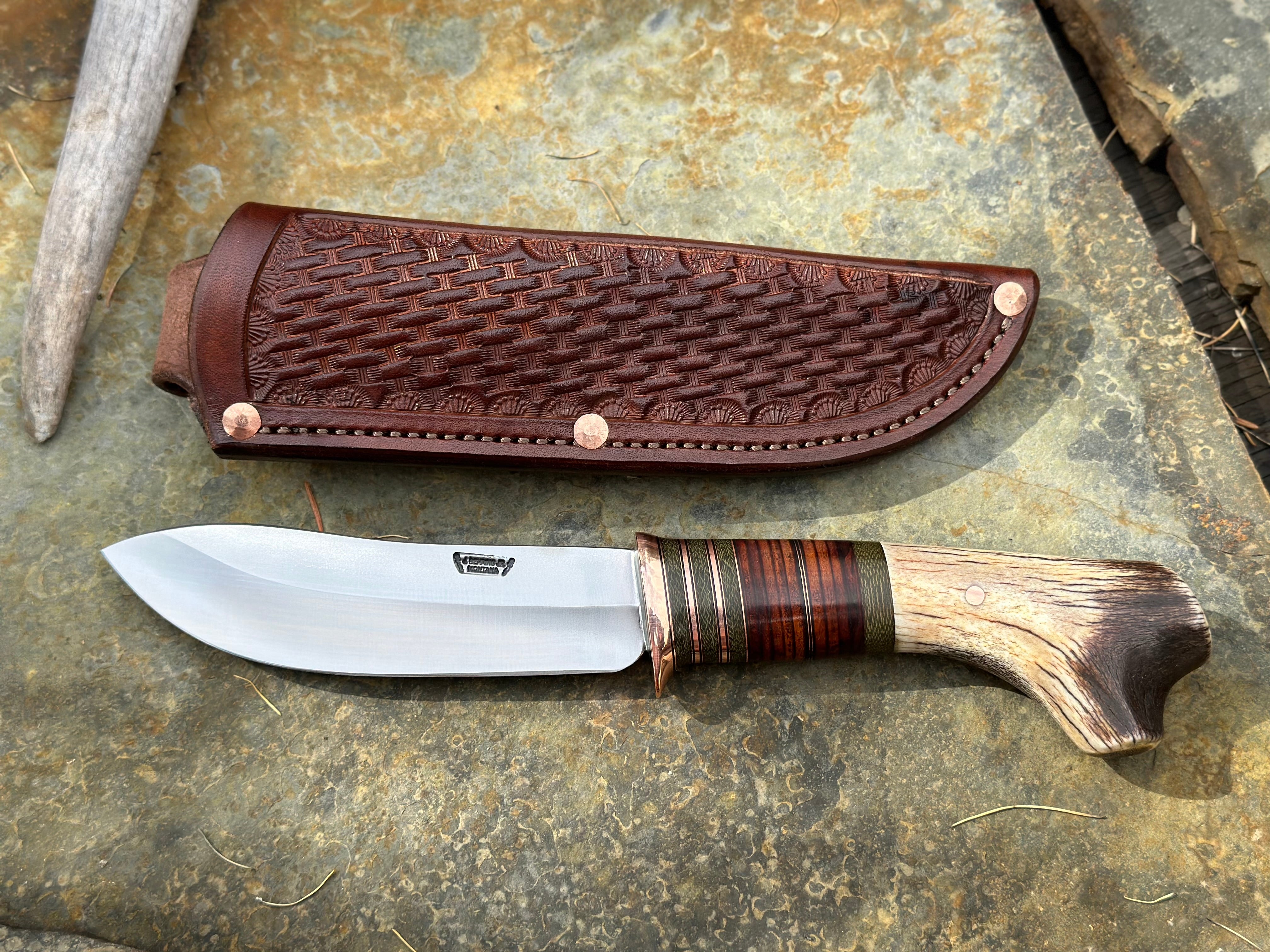 - Black Fiber, Copper, Green Micarta, & Horsehide Handle