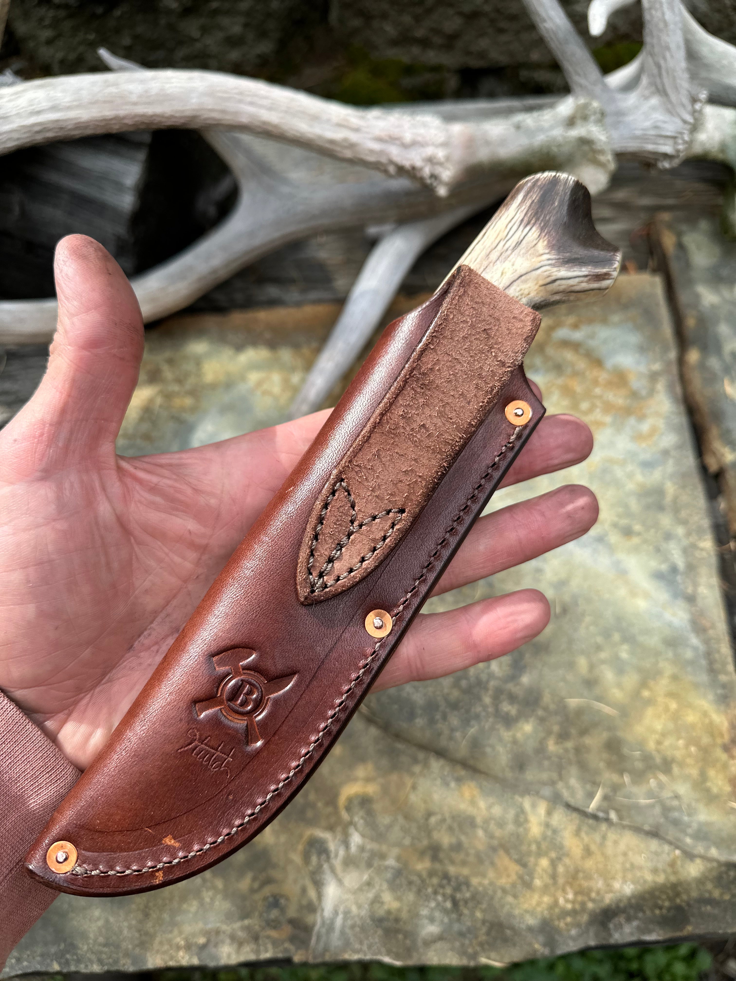- Fully Tooled Pouch Sheath w/ Copper Rivets