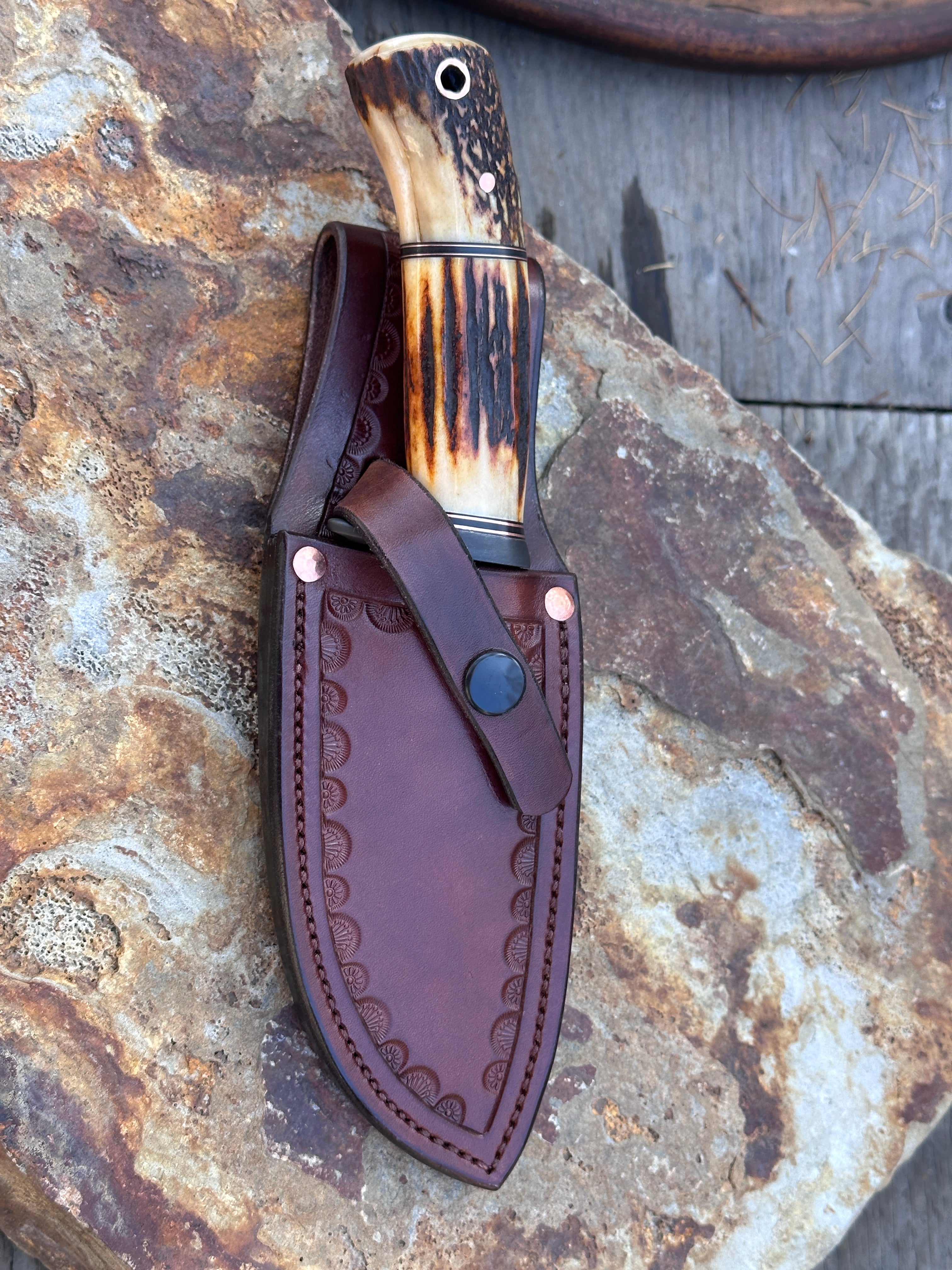 - Dark Brown Bordered Tooled Belt Sheath