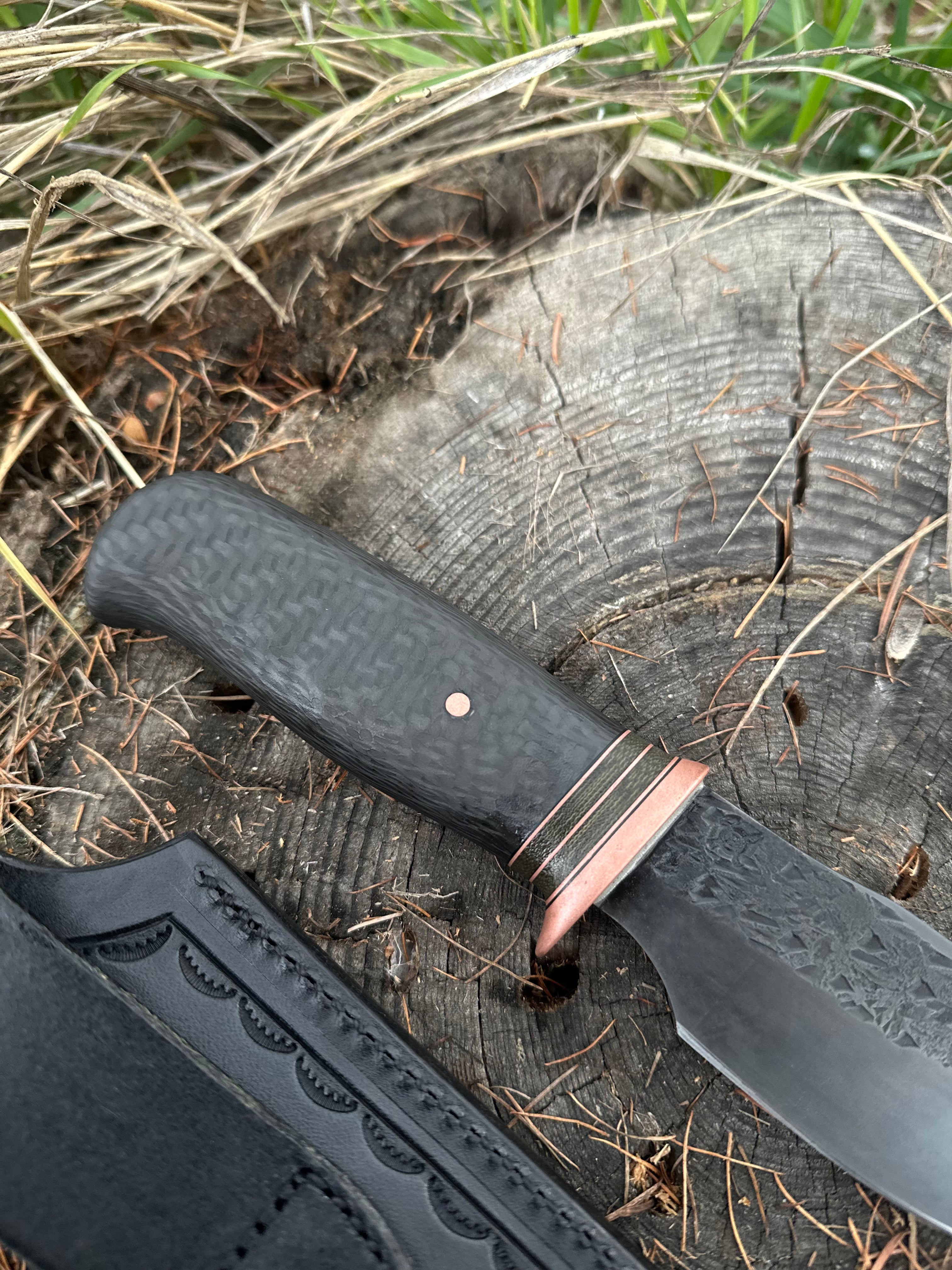 - Blasted Green Micarta, Copper, and Black Fiber Spacers