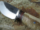 There are few things in the wild as tough as musk ox, and George "Nessmuk" Sears was one of those things. One of the original ultralite bad asses of the American frontier, this blade shape was one of his own designs, intended for just about every last cutting task you can imagine. Paired with a gorgeous yet unbelievably strong musk ox boss handle, this may just be the last knife you'll ever need. The blade is hand forged from high carbon 01 tool steel and measures 4 1/2" from tip to guard with a razor sharp hollow grind and a hammermark finish. The nickel silver guard is soldered in place above black, aluminum, copper, and desert ironwood burl spacers. The ox handle is pinned with aluminum and the overall length measures 9 1/8", plus it comes in a custom sheath from Warlander Leather.
