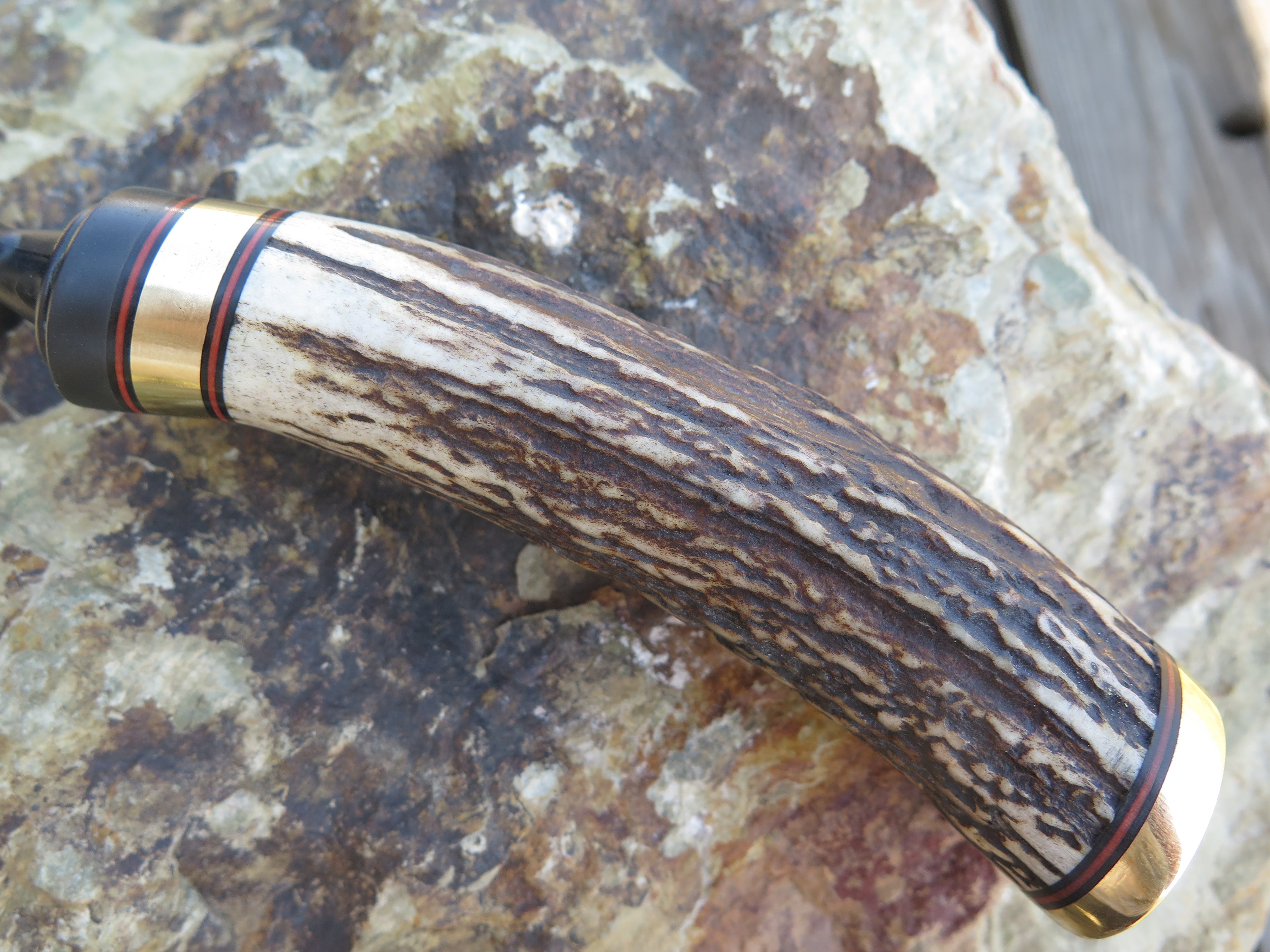 It just so happens to be that some of our favorite things here at Behring Made© have been around for thousands of years. The primitives made knives first, and it wasn't too long after that they also discovered the magic of fermantation: enter beer! It's anyone's guess how the cavemen were popping glass bottle tops off their favorite Northwest IPA's, but nowadays we know the only way to do it right is with the sambar stag bottle opener. This one is outfitted with a fat brass collar, black and maroon fiber spacers and matched up brass butt to boot. Fire up that grill and pop a cold one- it's been the human thing to do since just about forever.