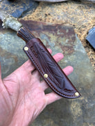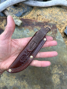 - Brown Pouch Sheath with Hand Carved Feather, & Brass Rivets