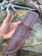 - Brown Belt Sheath With Black Rivets and Rattlesnake Inlays