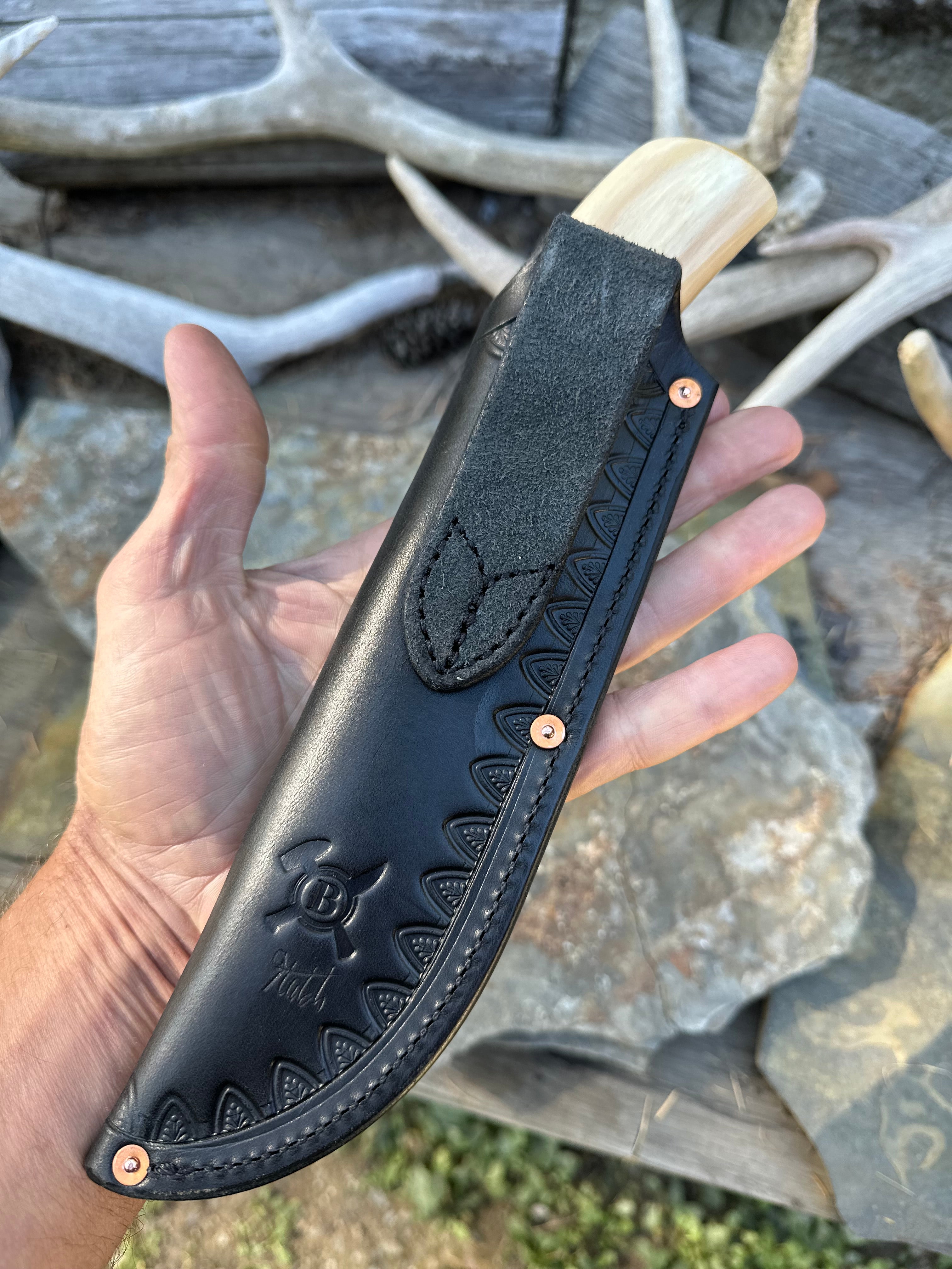 - Black Border Tolled Pouch Sheath w/ Copper Rivets